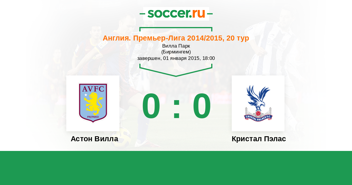 Протокол матча Астон Вилла против Кристал Пэлас