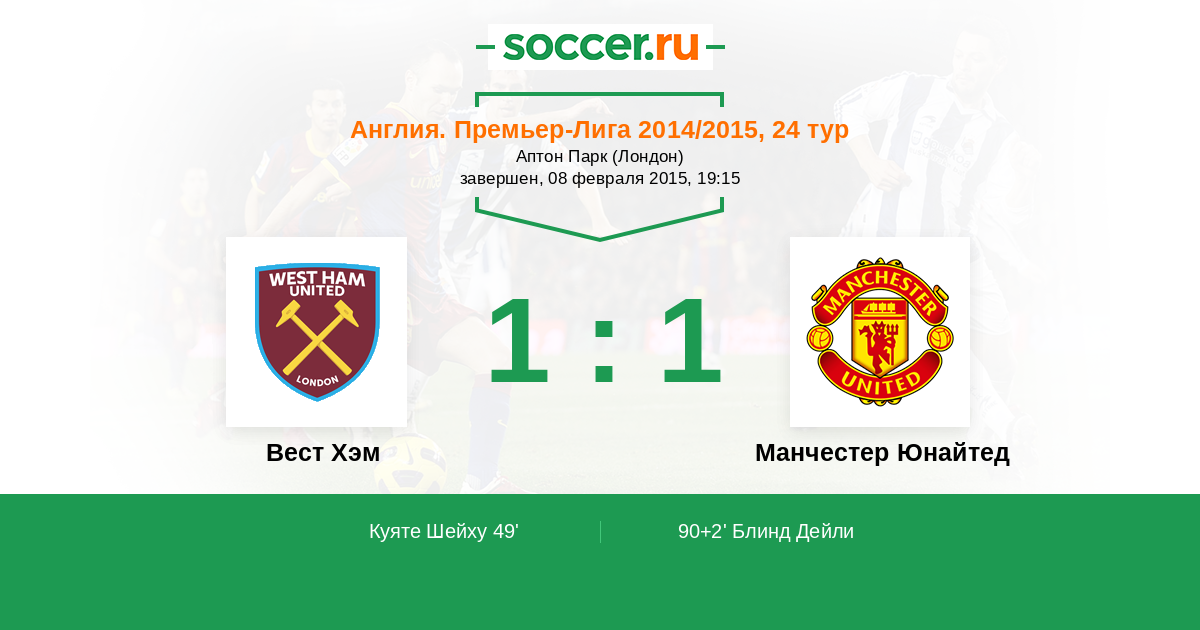 Протокол матча Вест Хэм против Манчестер Юнайтед