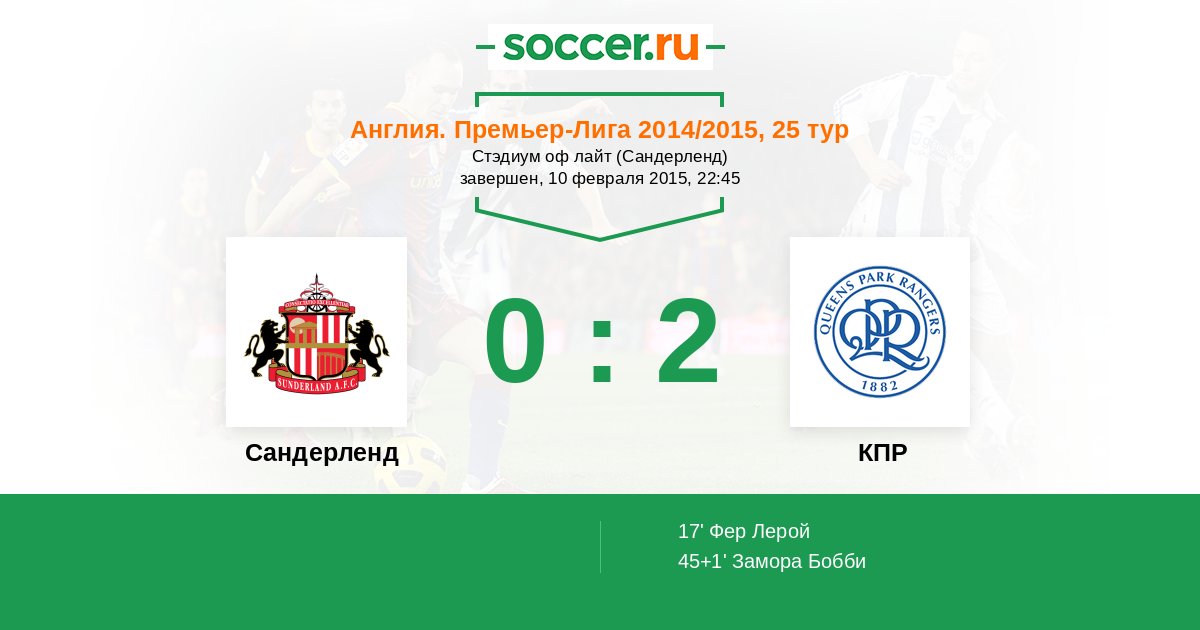 Протокол матча Сандерленд против КПР