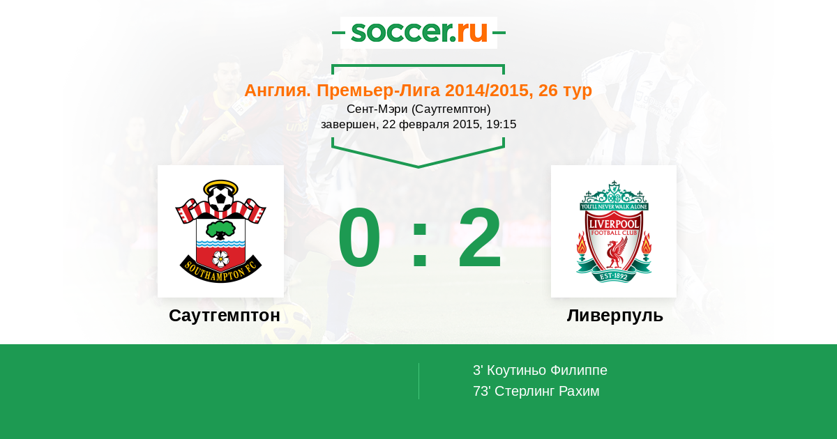 Протокол матча Саутгемптон против Ливерпуль