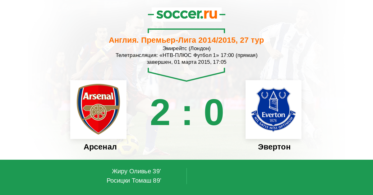 Протокол матча Арсенал против Эвертон