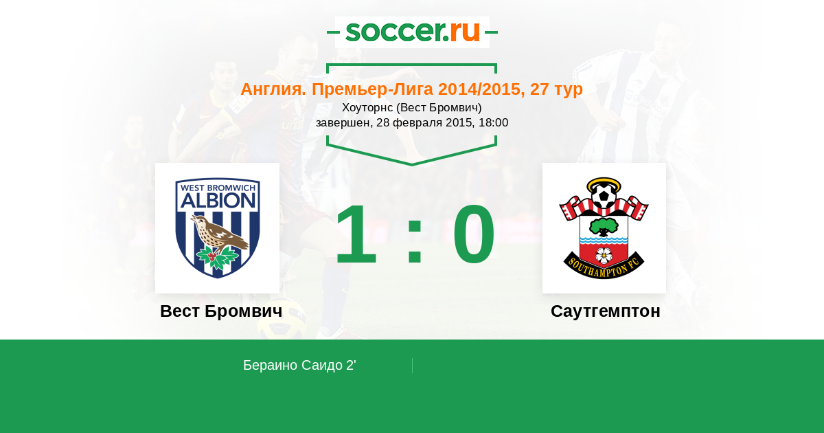 Протокол матча Вест Бромвич против Саутгемптон