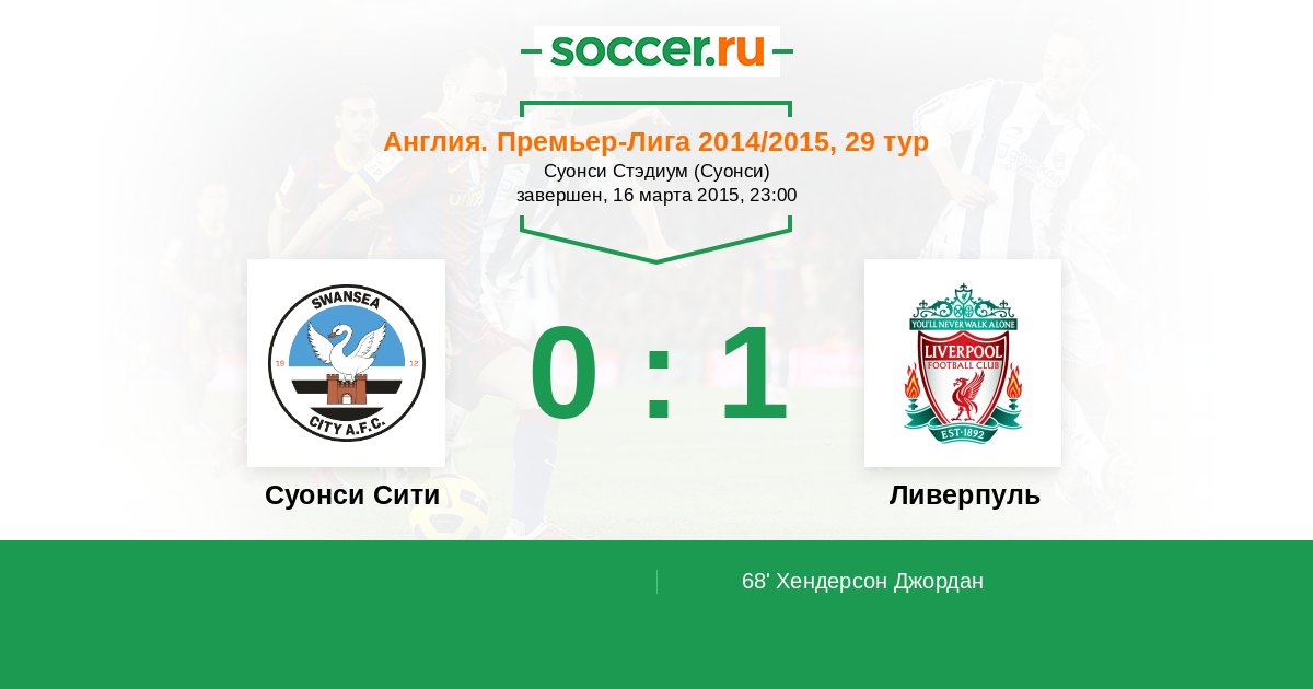 Протокол матча Суонси Сити против Ливерпуль