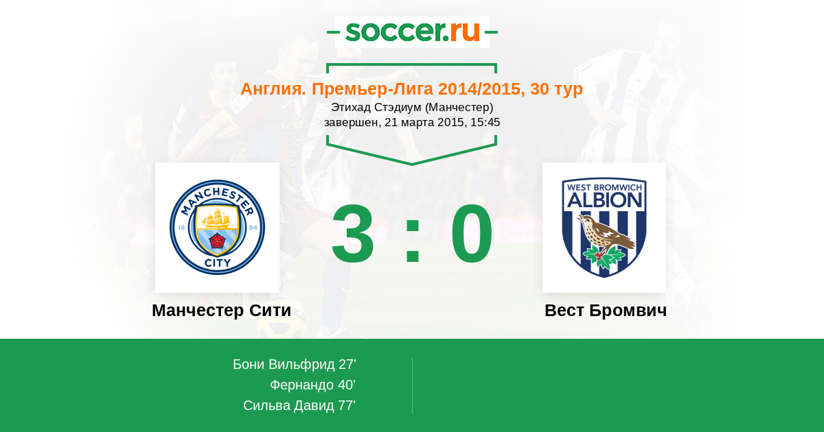 Протокол матча Манчестер Сити против Вест Бромвич