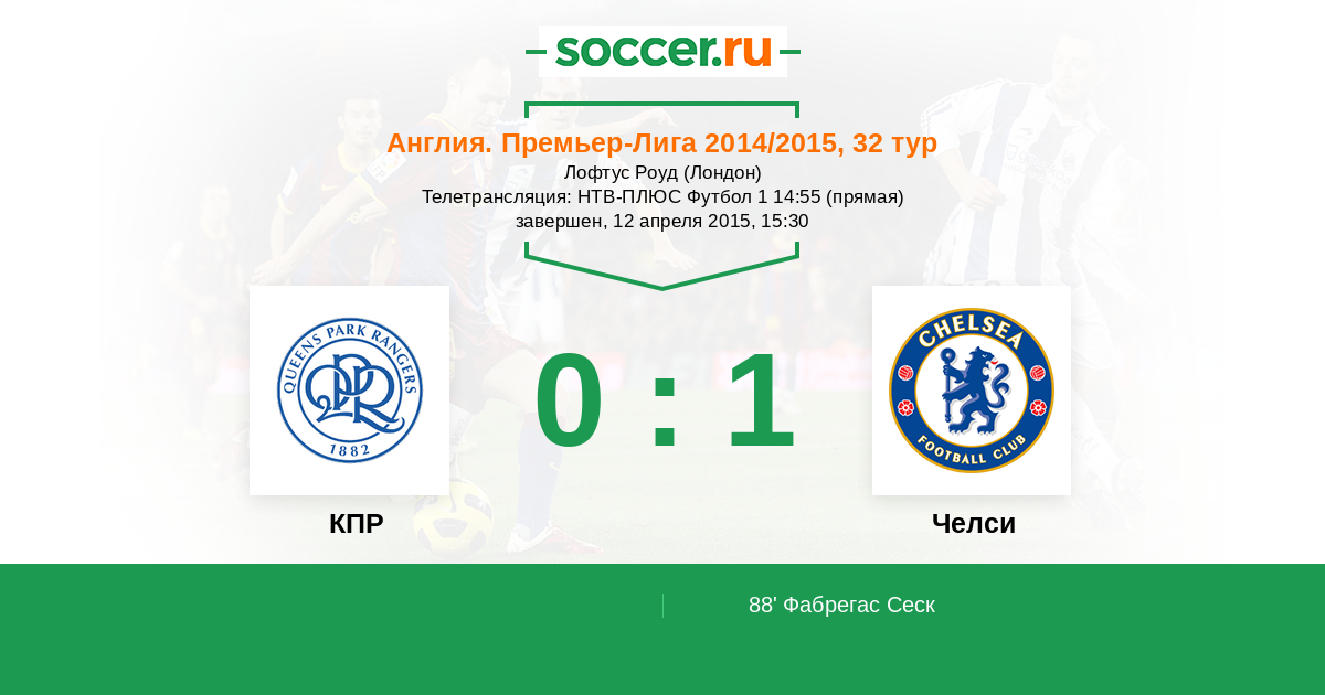 88' (0:1) Фабрегас Сеск (4) (Азар Эден (10))