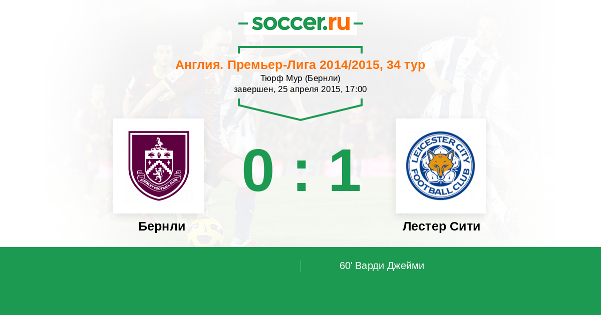 Протокол матча Бернли против Лестер Сити