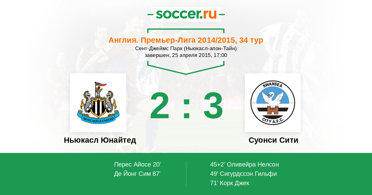 Протокол матча Ньюкасл Юнайтед против Суонси Сити