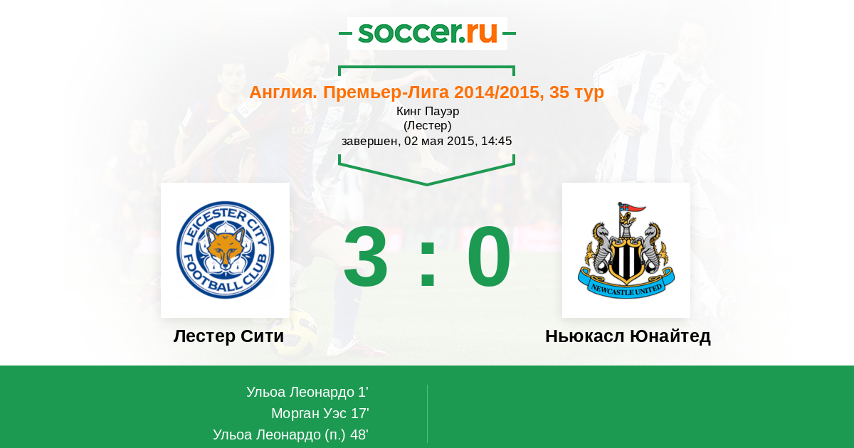 Протокол матча Лестер Сити против Ньюкасл Юнайтед