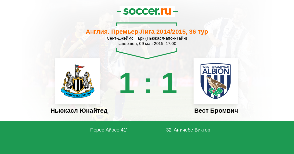 Протокол матча Ньюкасл Юнайтед против Вест Бромвич