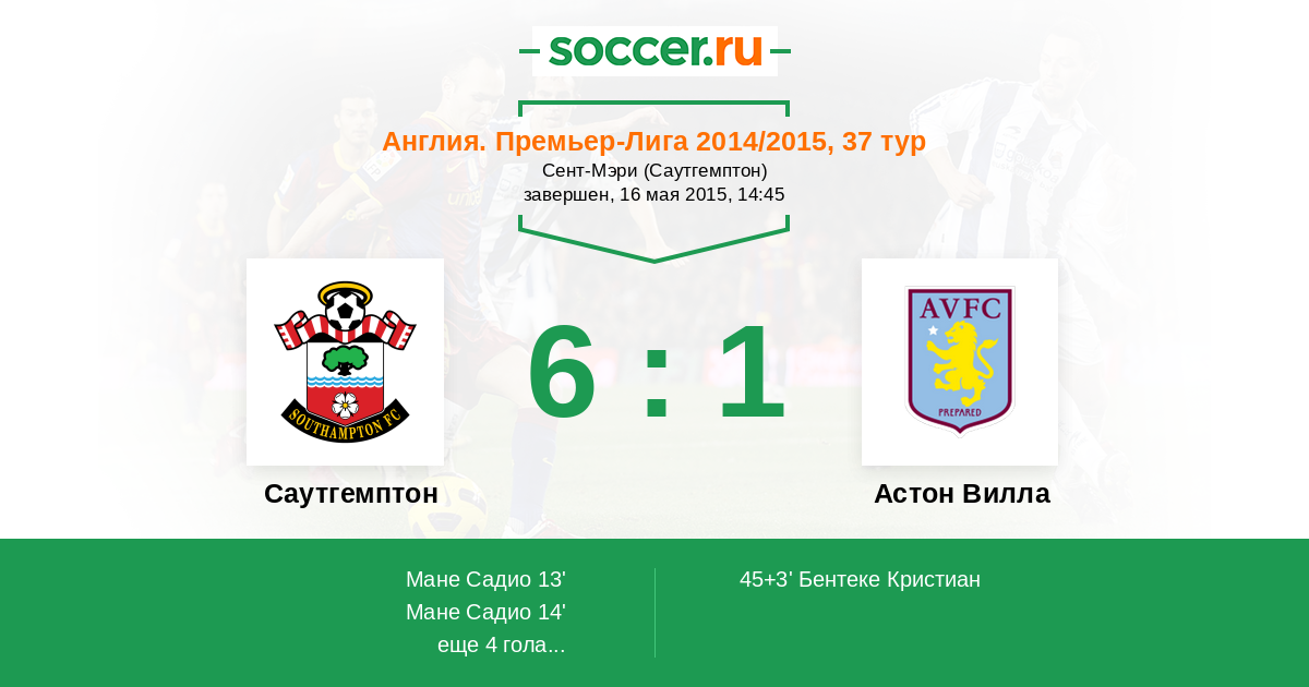 Протокол матча Саутгемптон против Астон Вилла