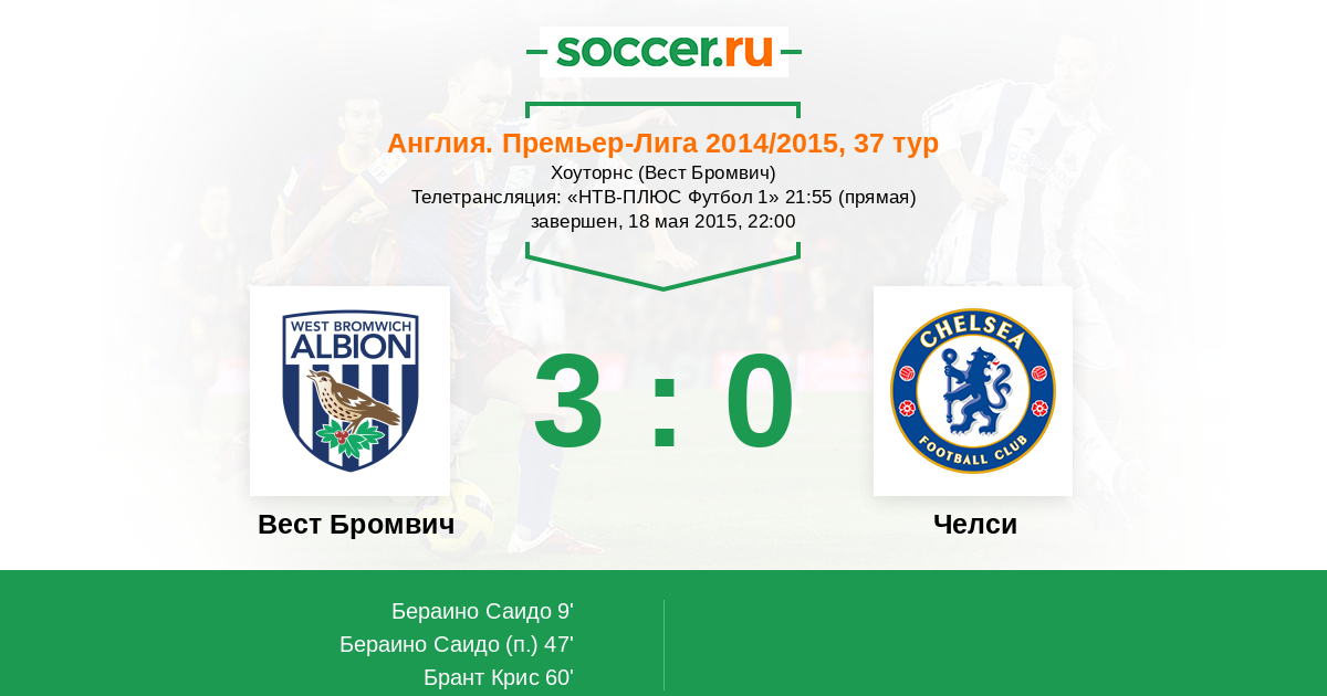 Протокол матча Вест Бромвич против Челси