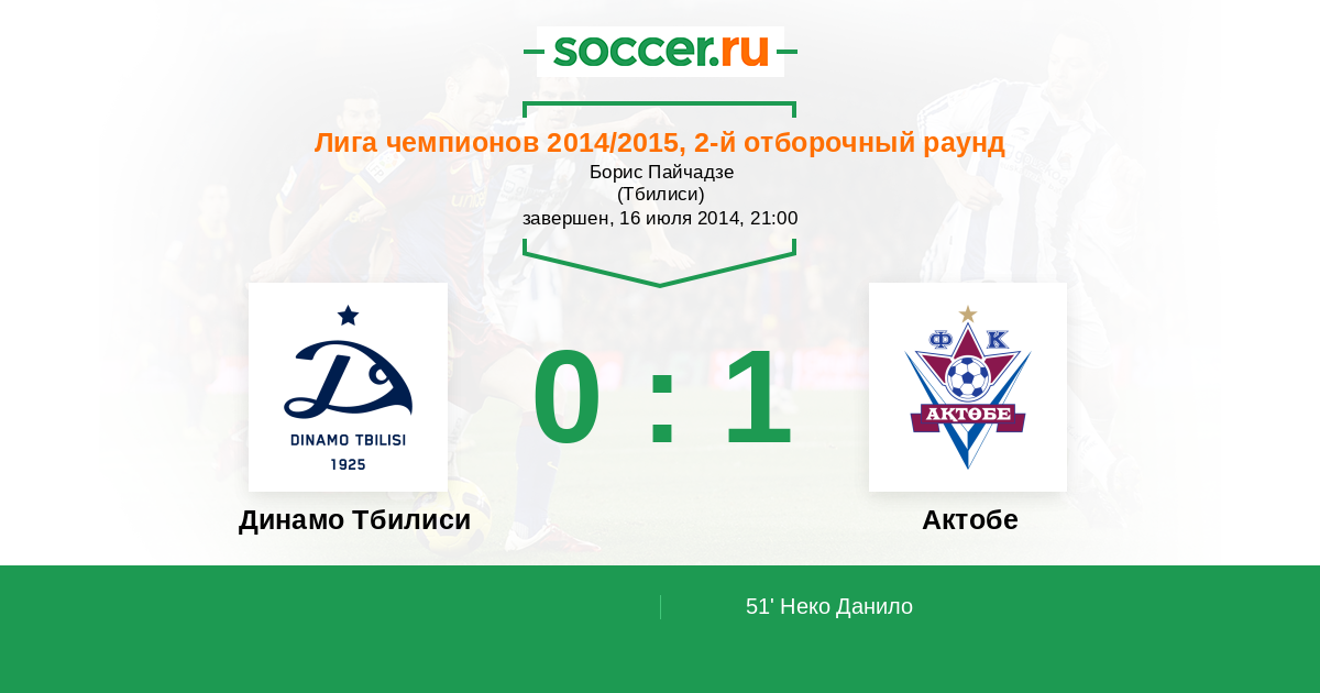 Протокол матча Динамо Тбилиси против Актобе