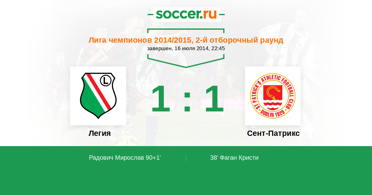 Протокол матча Легия против Сент-Патрикс