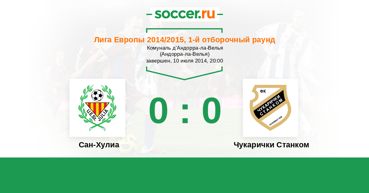Протокол матча Сан-Хулиа против Чукарички Станком