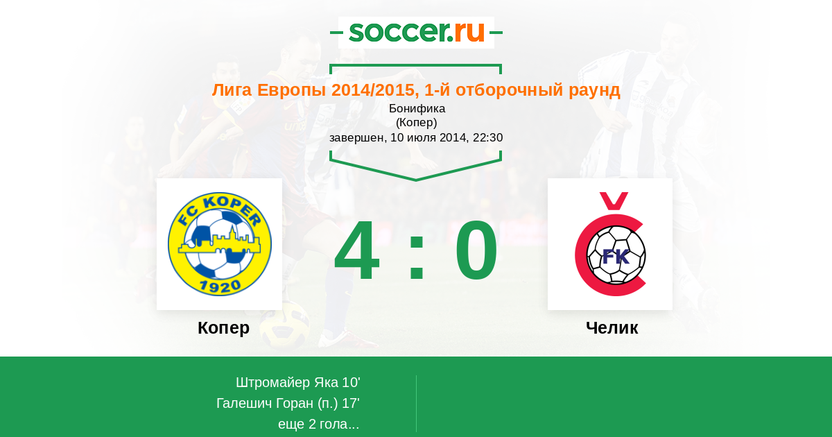 Протокол матча Копер против Челик