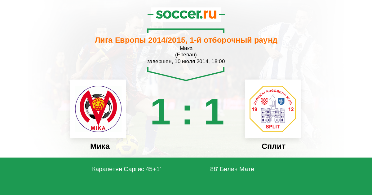 Протокол матча Мика против Сплит