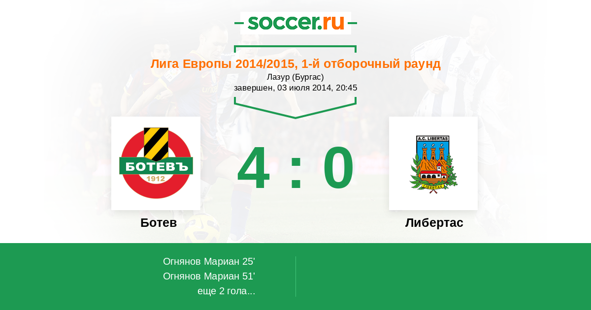 Протокол матча Ботев против Либертас