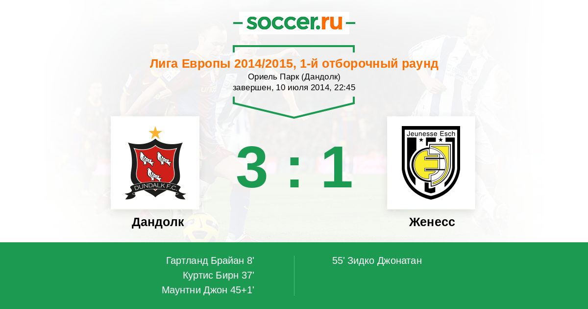 Протокол матча Дандолк против Женесс