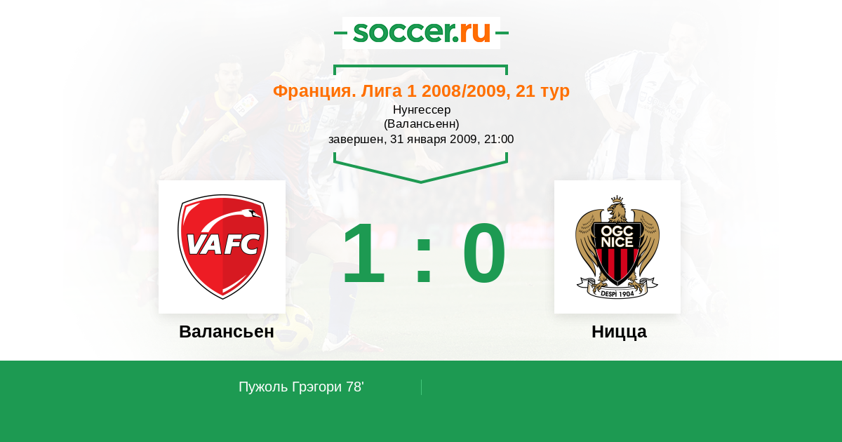 Протокол матча Валансьен против Ницца