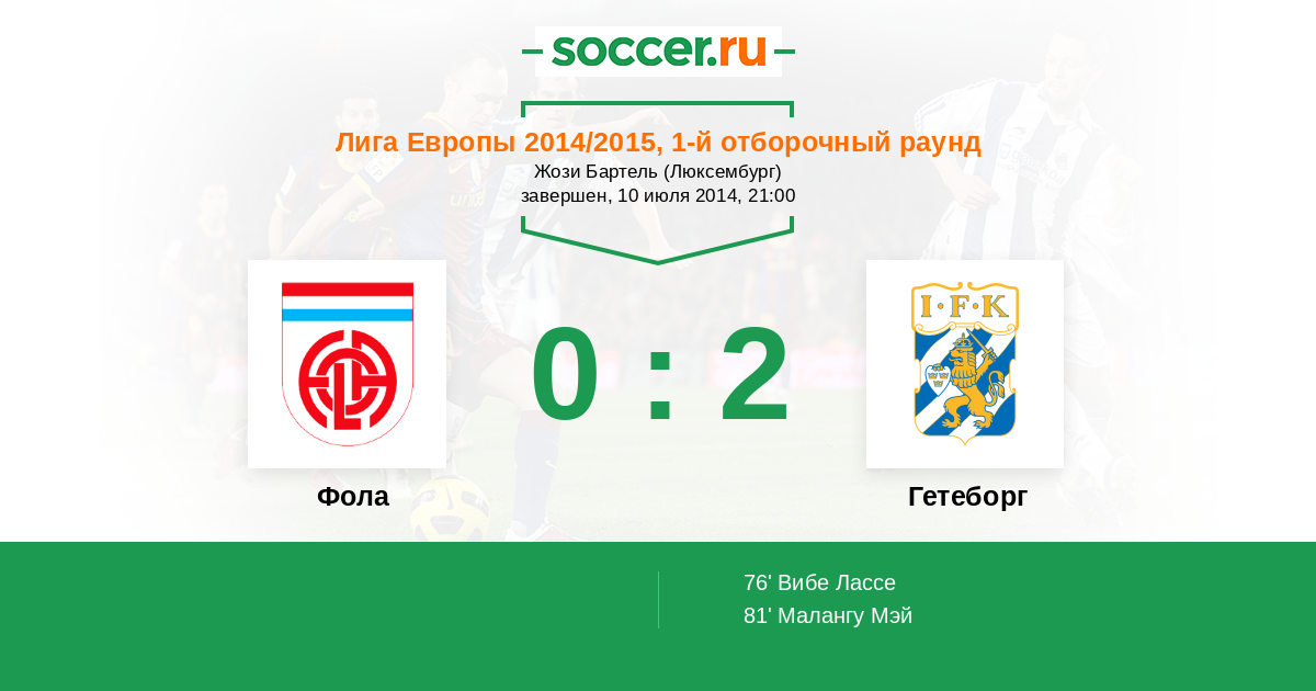 Протокол матча Фола против Гетеборг