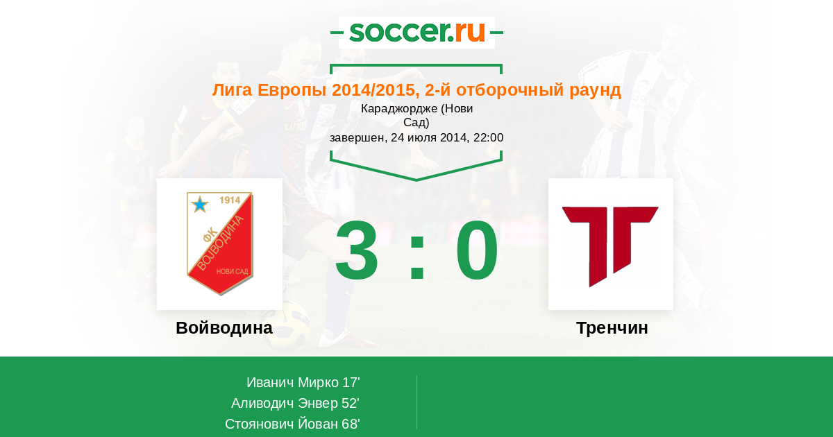 Протокол матча Войводина против Тренчин