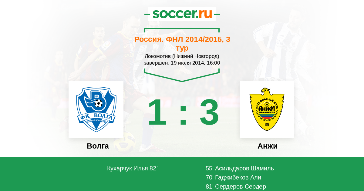 Протокол матча Волга против Анжи