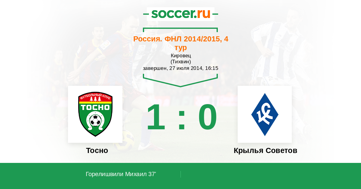 Протокол матча Тосно против Крылья Советов