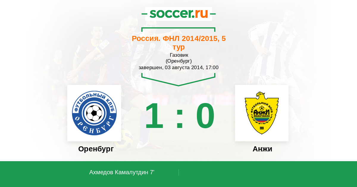 Протокол матча Газовик против Анжи