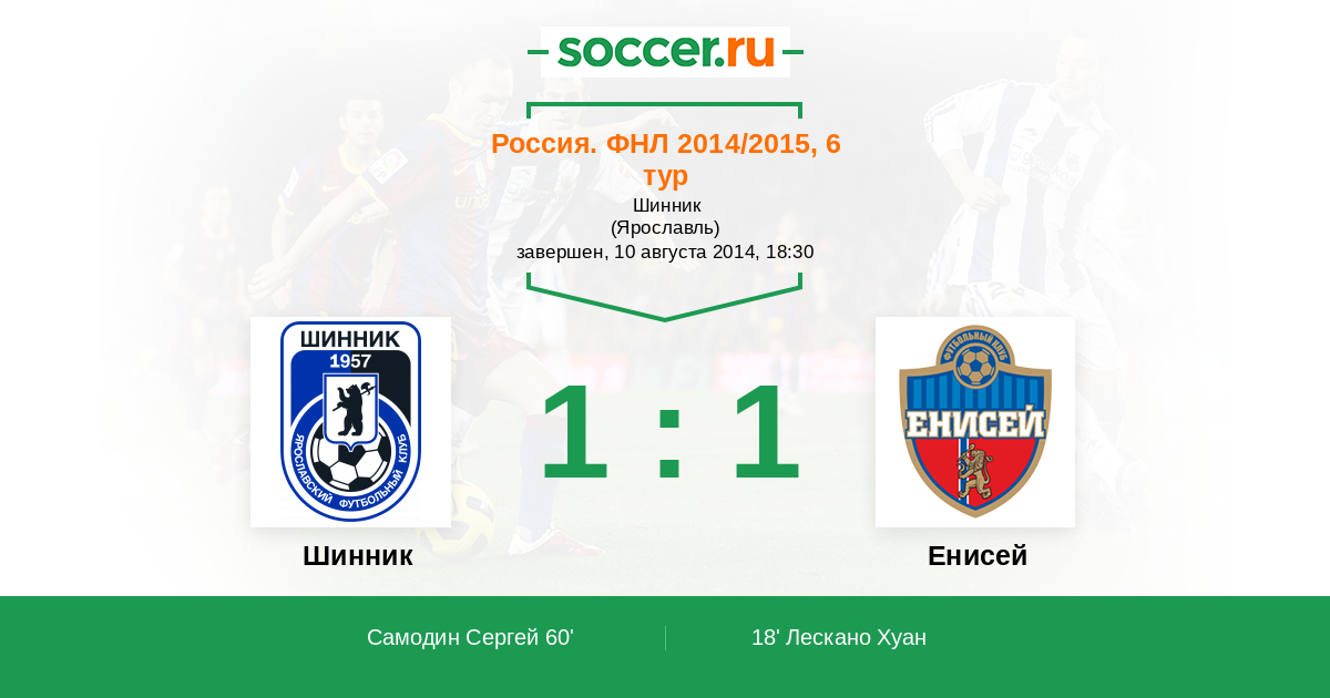 Протокол матча Шинник против Енисей