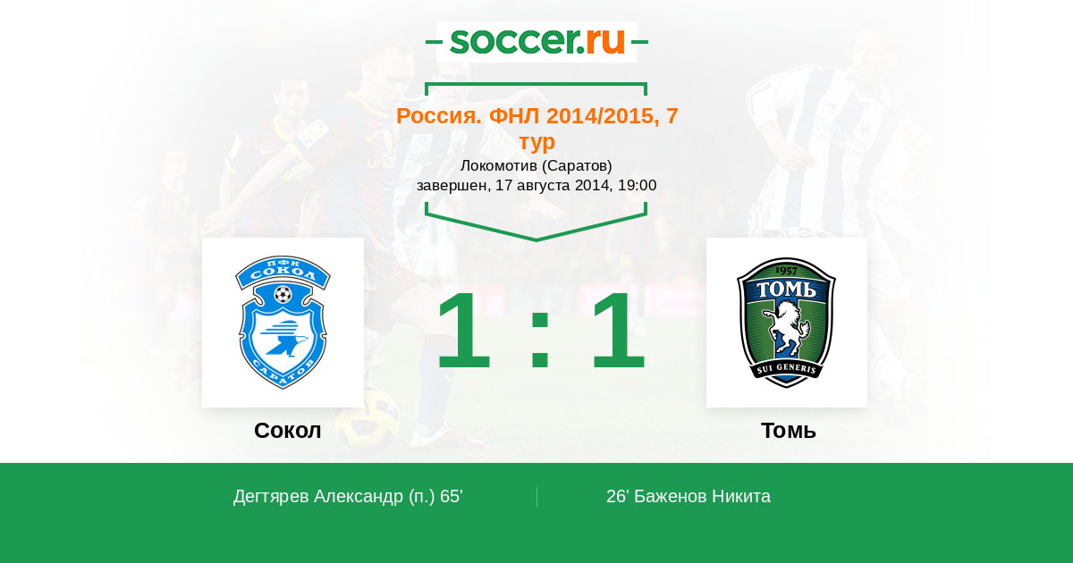Протокол матча Сокол против Томь