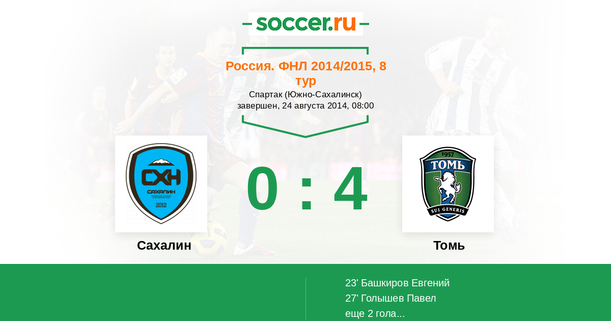 Протокол матча Сахалин против Томь