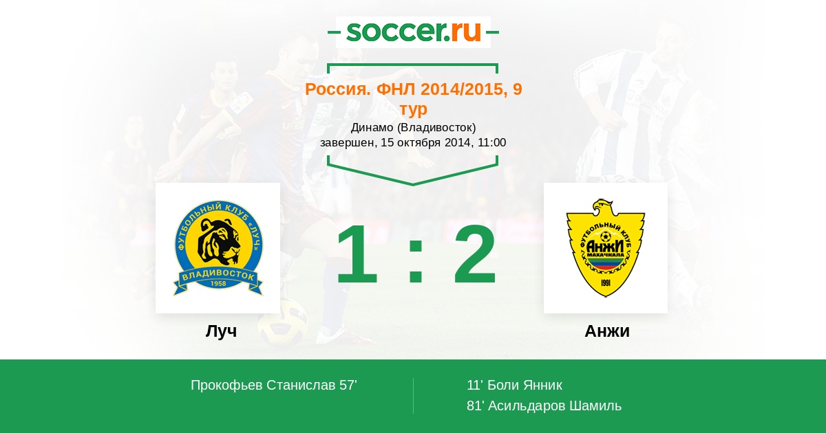 Протокол матча Луч против Анжи