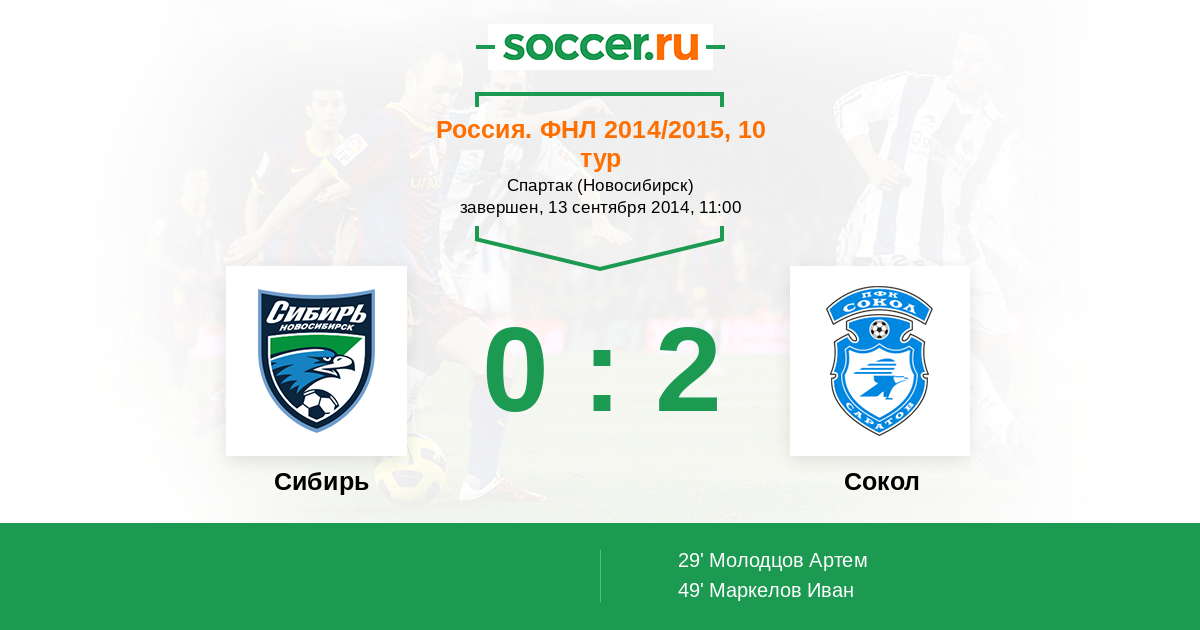 Протокол матча Сибирь против Сокол