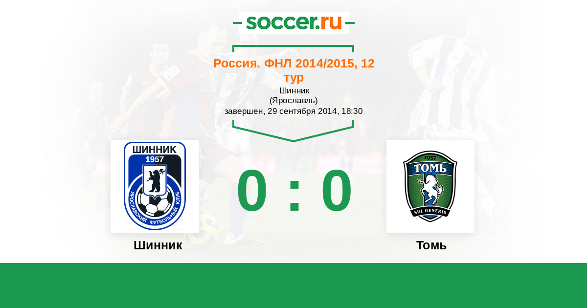 Протокол матча Шинник против Томь