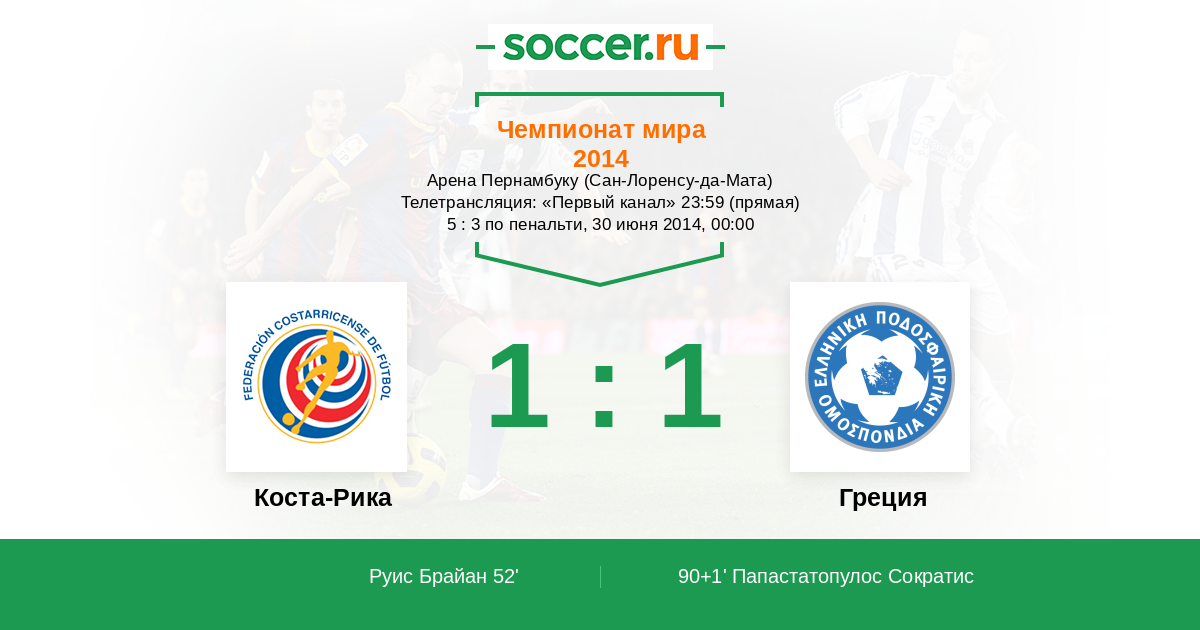 Протокол матча Коста-Рика против Греция