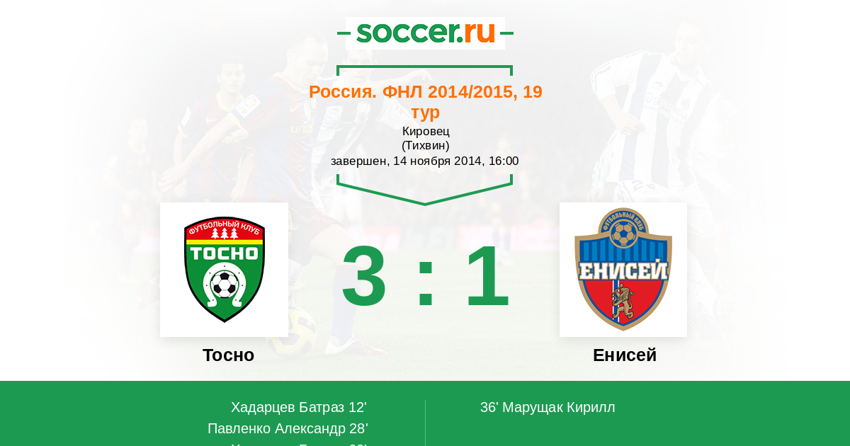 Протокол матча Тосно против Енисей