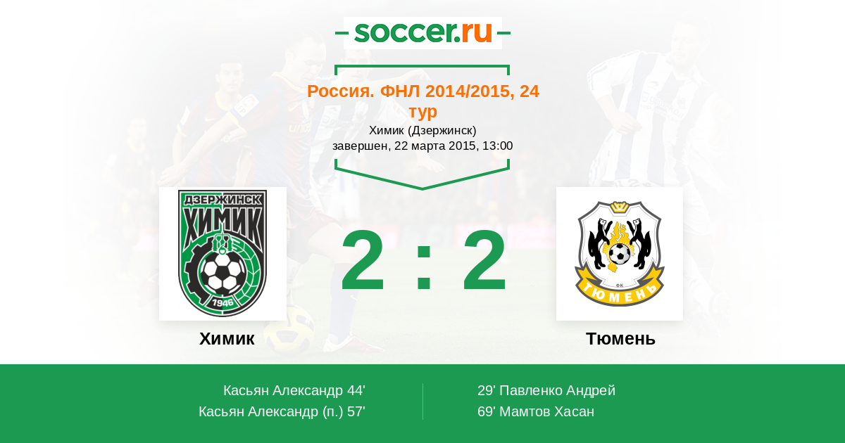 Протокол матча Химик против Тюмень
