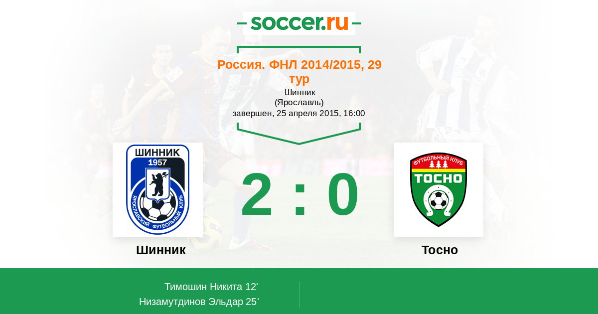 Протокол матча Шинник против Тосно