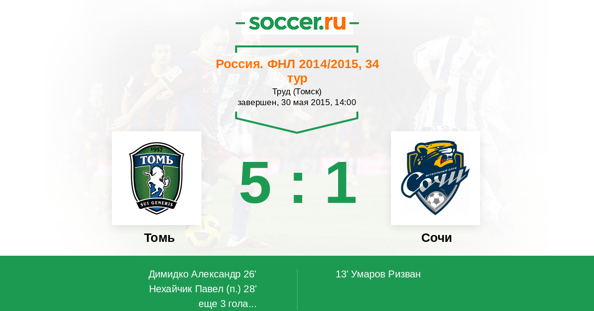 Протокол матча Томь против Динамо СПб