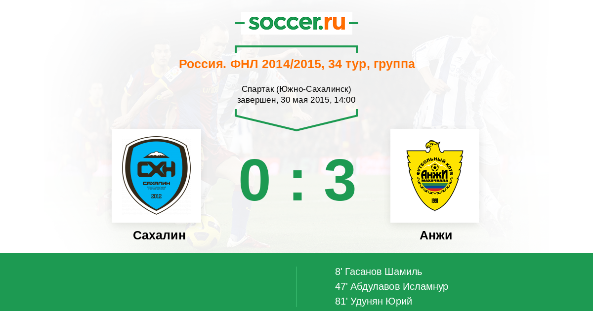 Протокол матча Сахалин против Анжи