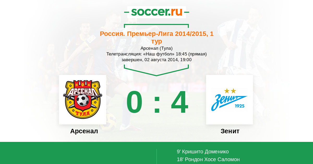 18' (0:2) Рондон Хосе Саломон (23) (Халк (7))