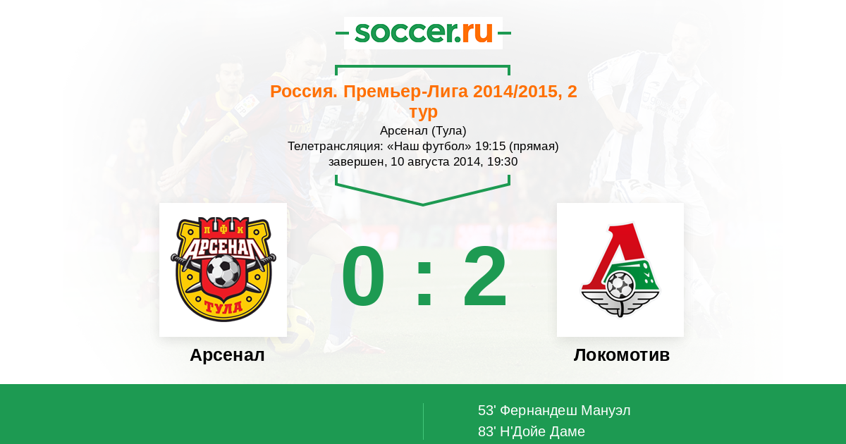 53' (0:1) Фернандеш Мануэл (4) (Янбаев Ренат (55))