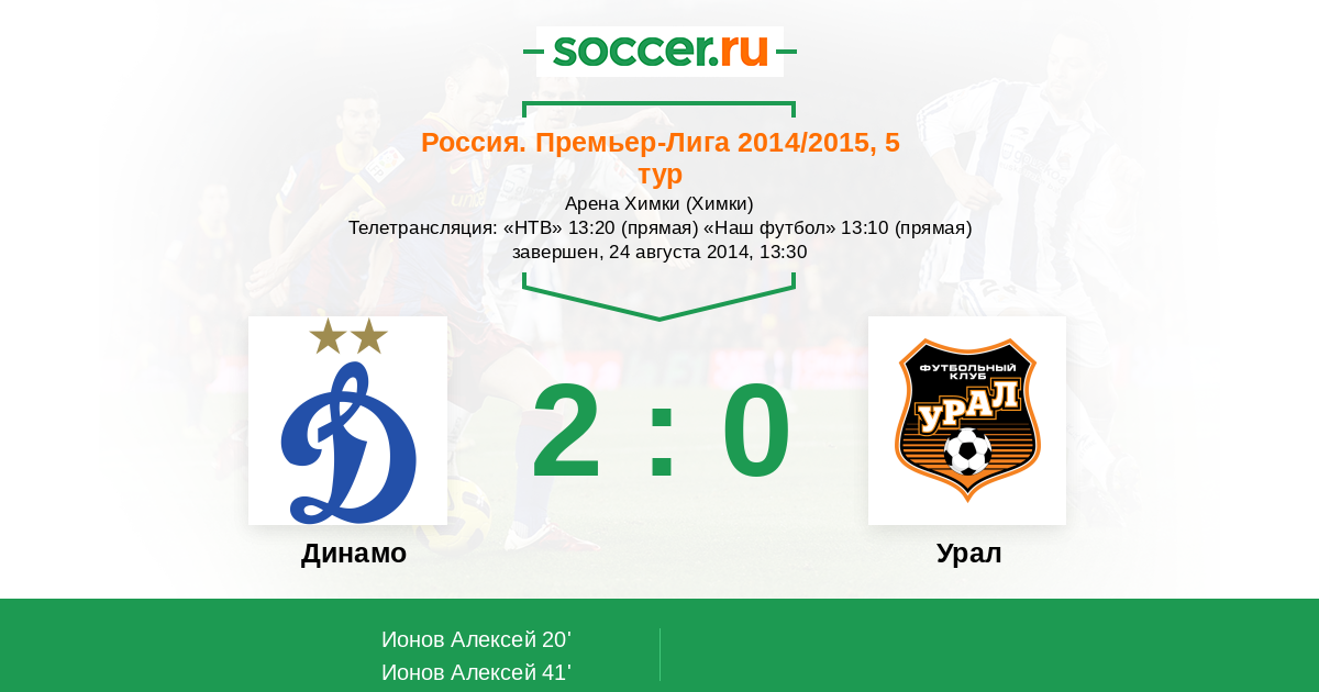 Телетрансляция: «НТВ» 13:20 (прямая) «Наш футбол» 13:10 (прямая)