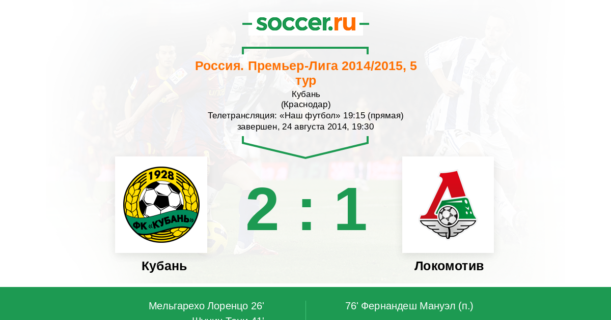 Протокол матча Кубань против Локомотив