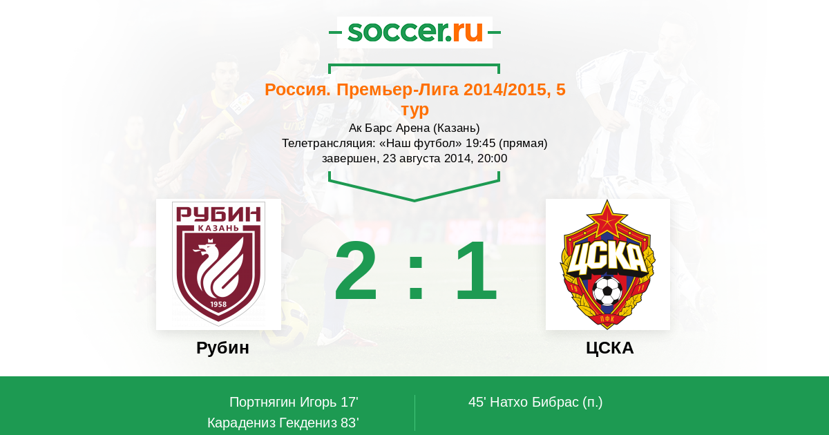 Протокол матча Рубин против ЦСКА