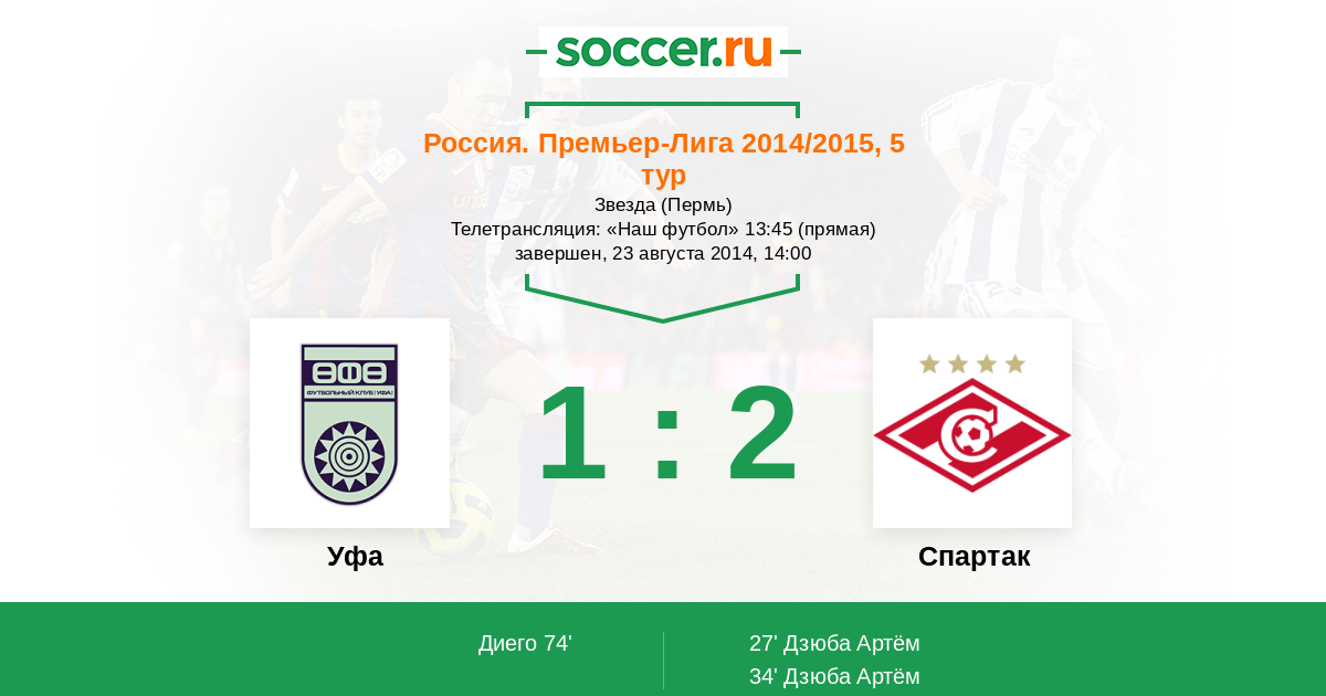 Протокол матча Уфа против Спартак