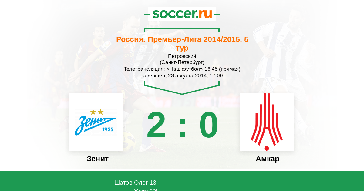 Протокол матча Зенит против Амкар