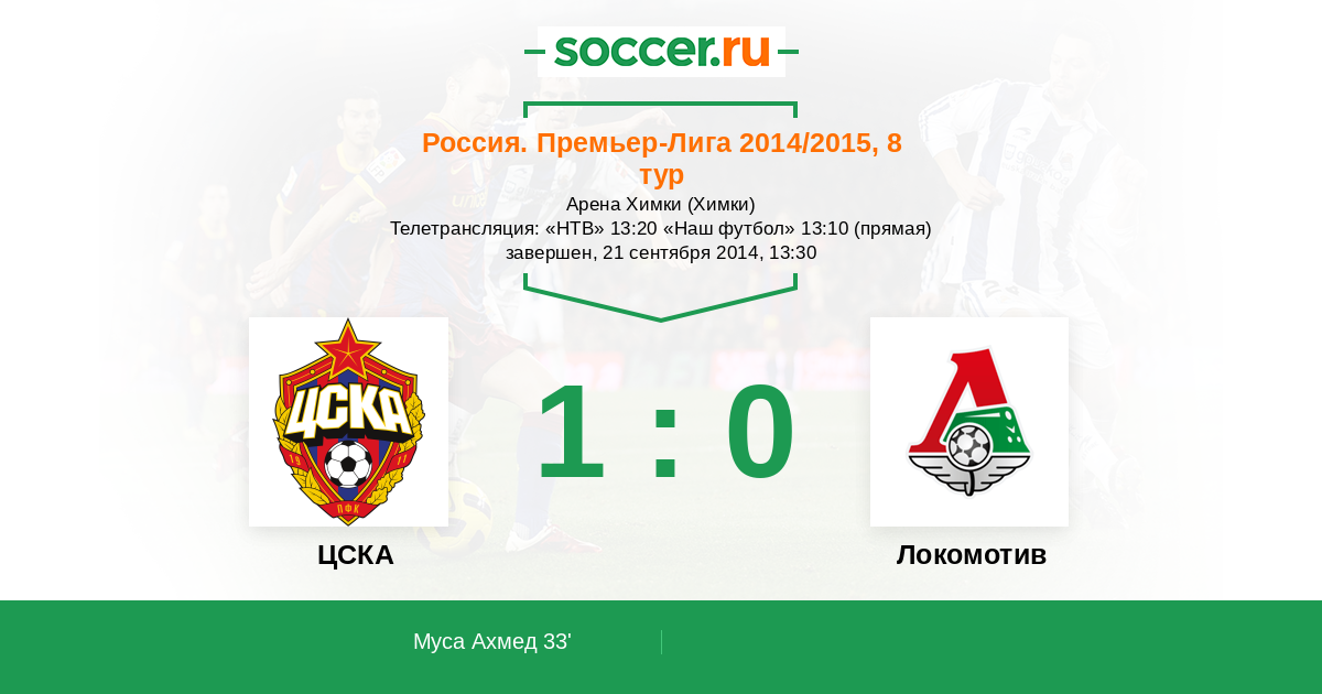 Протокол матча ЦСКА против Локомотив
