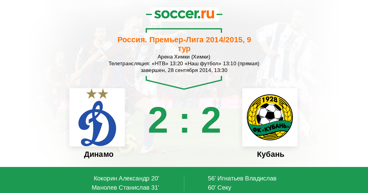 Протокол матча Динамо против Кубань