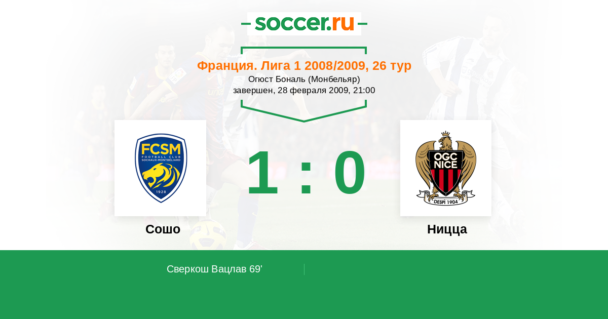 Протокол матча Сошо против Ницца